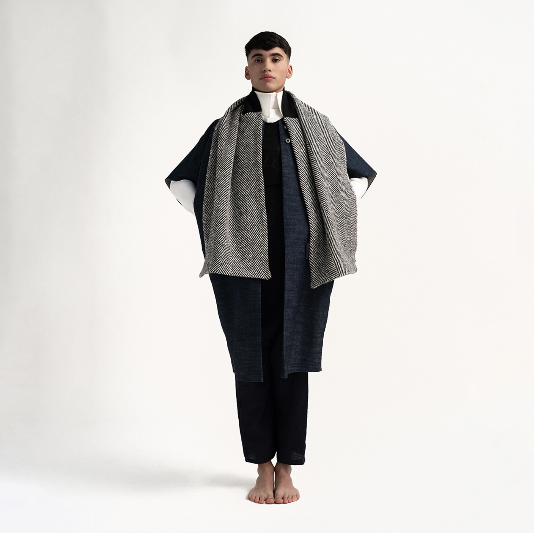The Linen Cocoon Long Jacket is a study in refined minimalism and form. Crafted from 100% pure Irish linen — woven exclusively for The Costume Room by Emblem Weavers in Wexford, Ireland — it features two Donut Tack Buttons with a hidden placket that conceals the fastening for a clean, uninterrupted line. Two inseam side pockets offer subtle function, while French seams lend a thoughtful, lasting finish. Tailored in an elongated cocoon silhouette, this piece drapes fluidly and flatters most body types. Available in black, black and white, and black and navy.